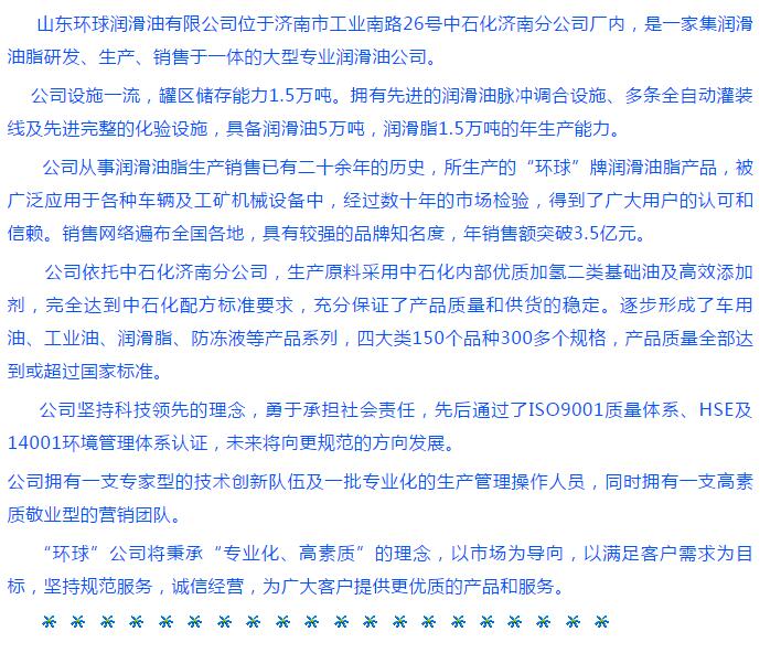 山東環(huán)球潤(rùn)滑油有限公司